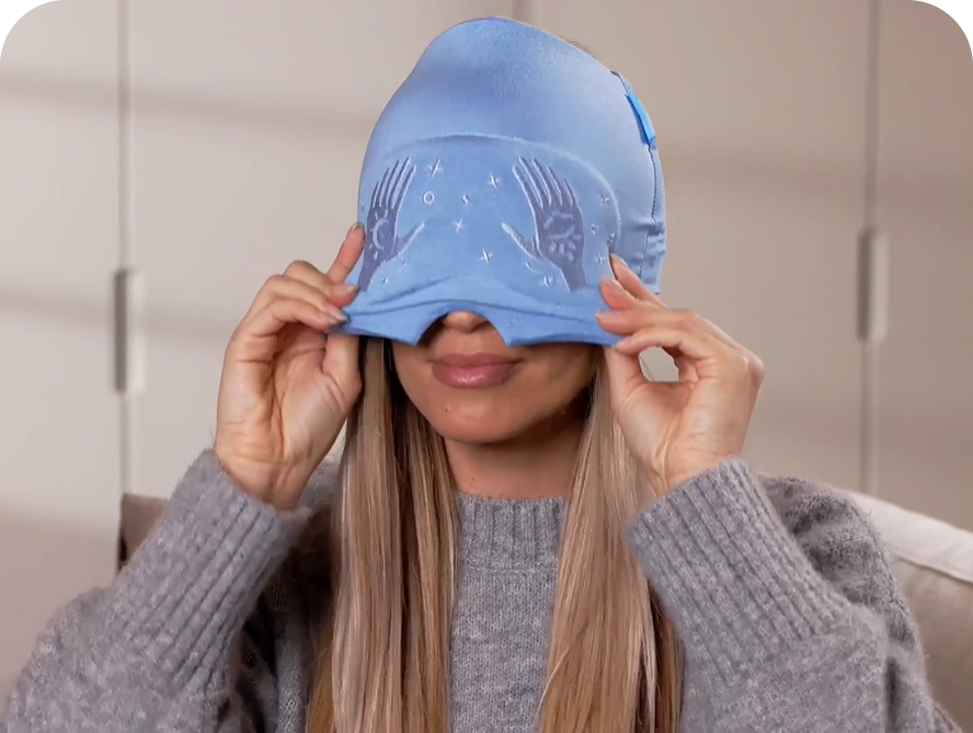Soothefy is the first cap with a built-in slide-up eye mask that blocks light when you need complete darkness, or slides up when you want to stay active – checking your phone, working, or caring for family.